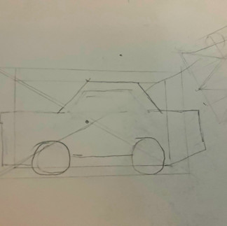 Drawing a car in perspective.